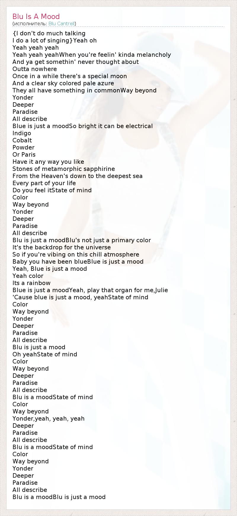 А как ты думаешь, о чем песня "Blu Is A Mood" ?