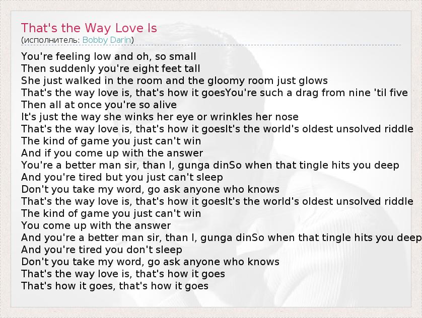 А как ты думаешь, о чем песня "That's the Way Love Is" ?