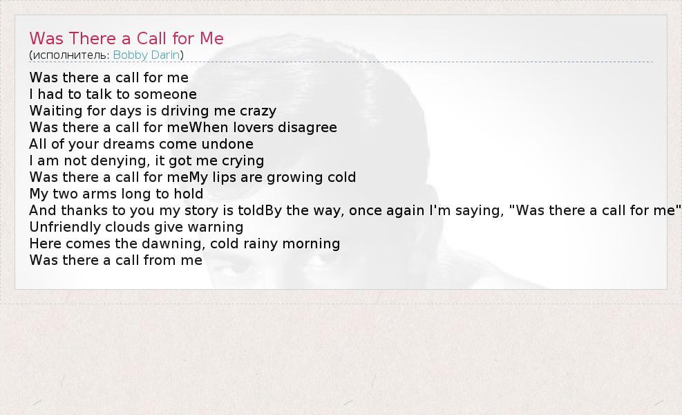 А как ты думаешь, о чем песня "Was There a Call for Me" ?