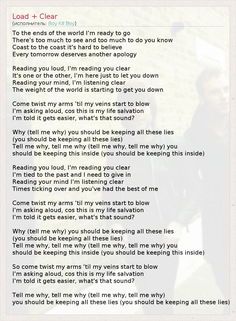 А как ты думаешь, о чем песня "Load + Clear" ?