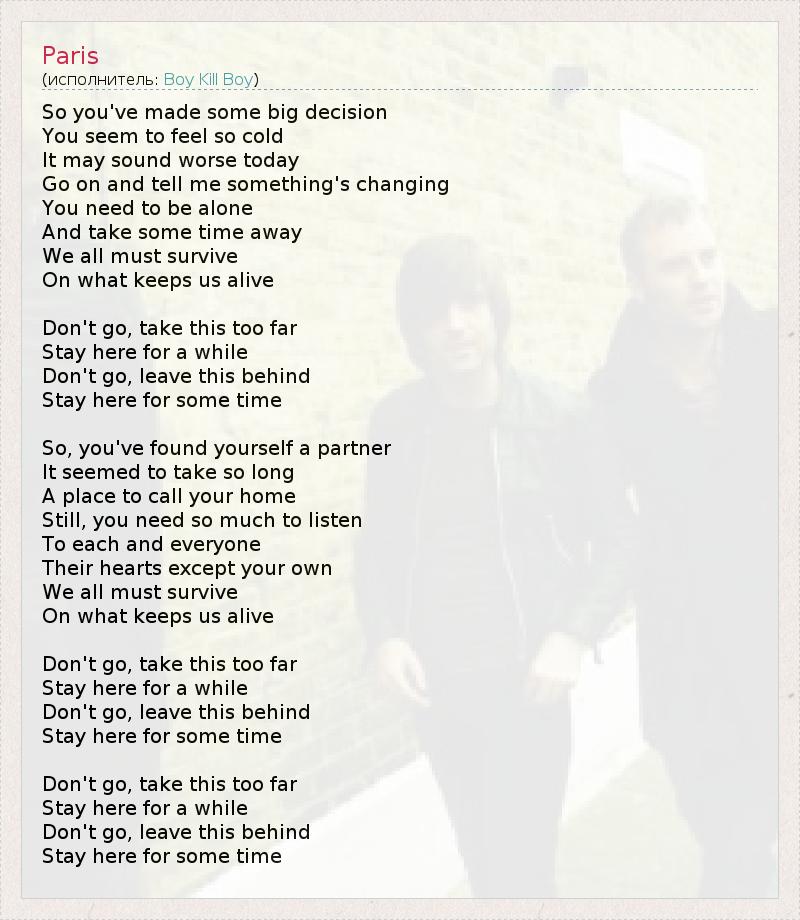 А как ты думаешь, о чем песня "Paris" ?