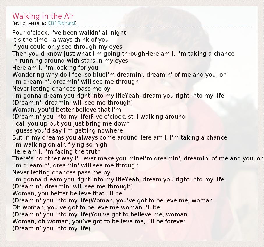 А как ты думаешь, о чем песня "Walking in the Air" ?