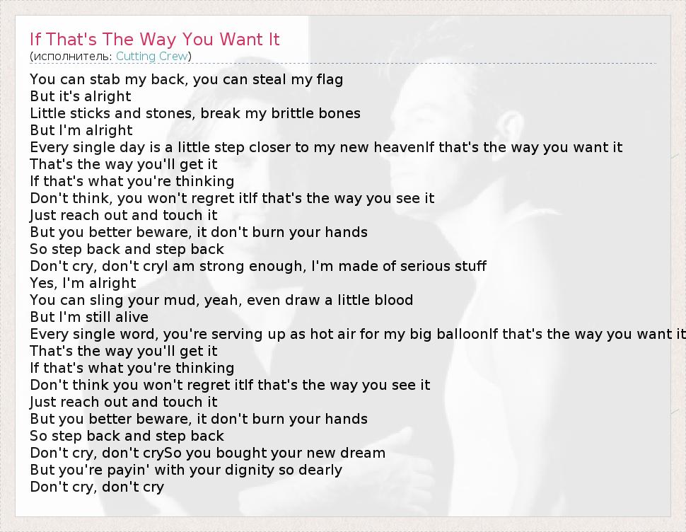 А как ты думаешь, о чем песня "If That's The Way You Want It" ?