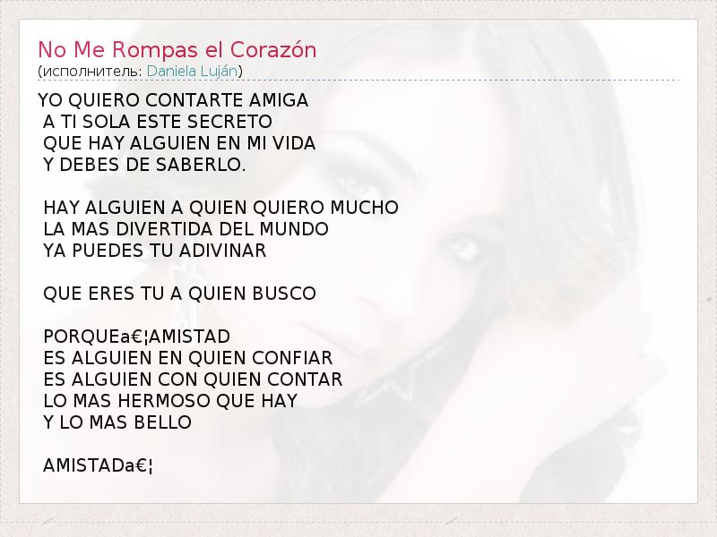 А как ты думаешь, о чем песня "No Me Rompas el Corazón" ?