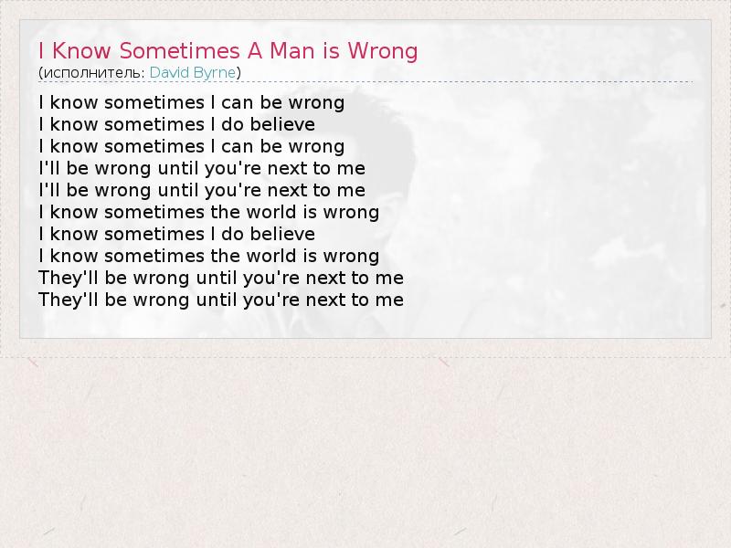 А как ты думаешь, о чем песня "I Know Sometimes A Man is Wrong" ?
