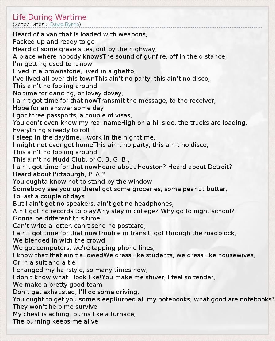 А как ты думаешь, о чем песня "Life During Wartime" ?