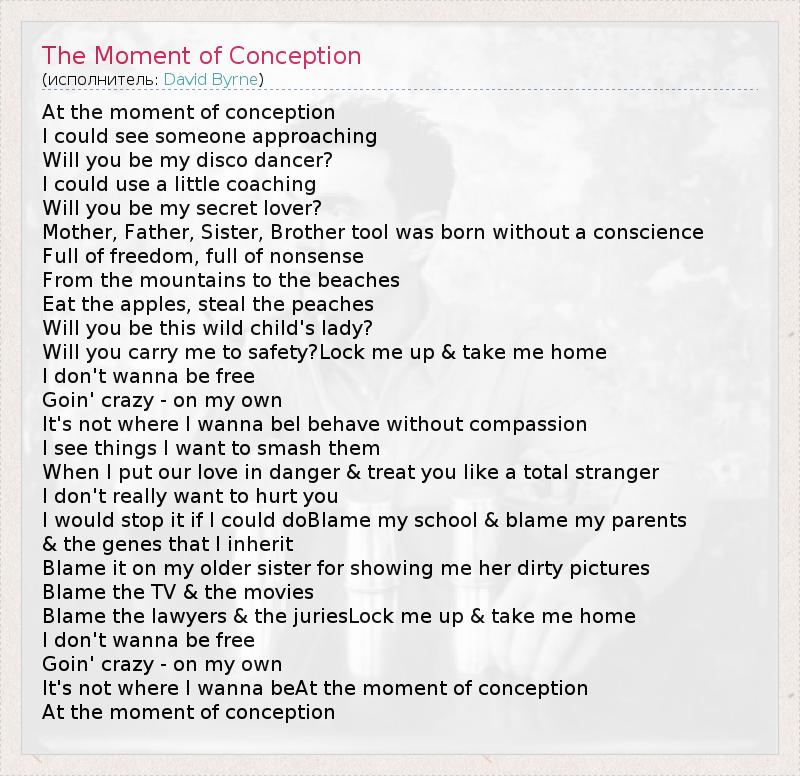 А как ты думаешь, о чем песня "The Moment of Conception" ?