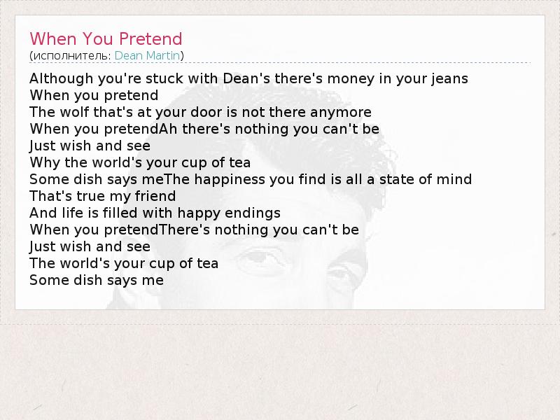 А как ты думаешь, о чем песня "When You Pretend" ?