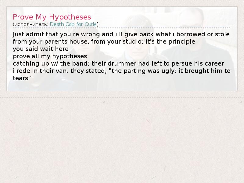 А как ты думаешь, о чем песня "Prove My Hypotheses" ?