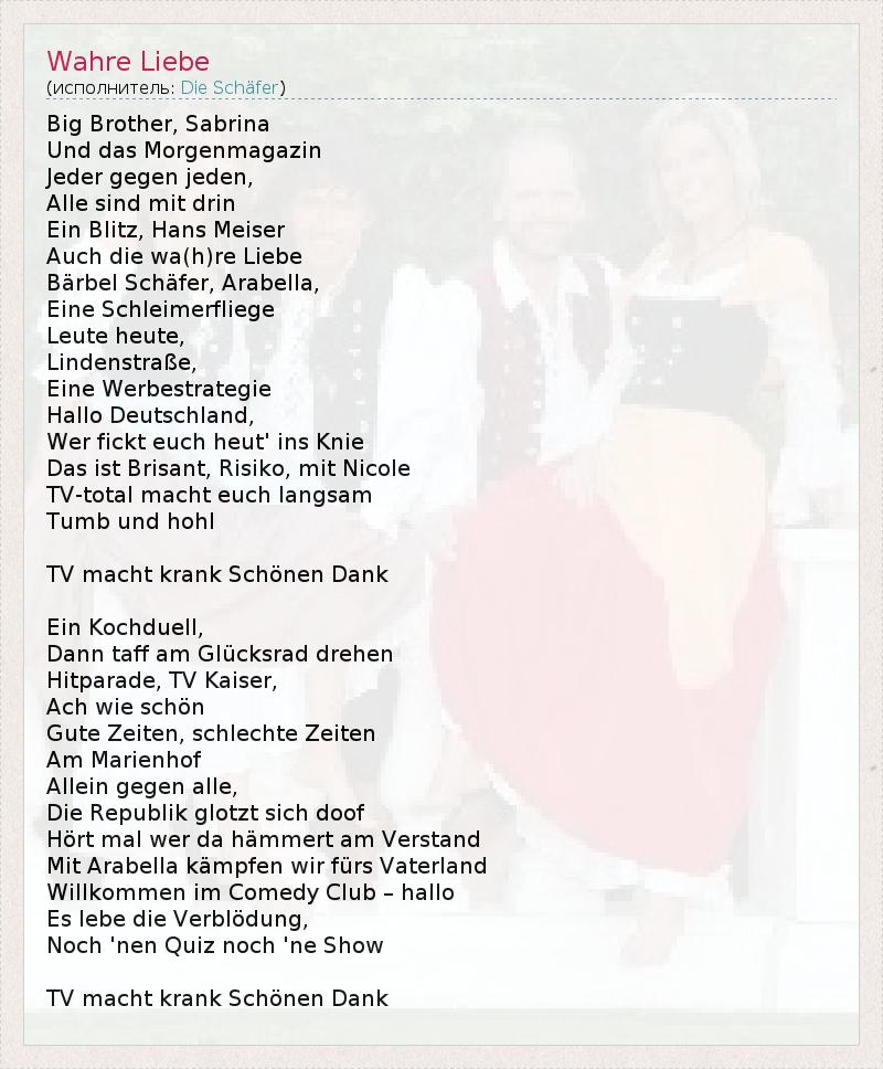 А как ты думаешь, о чем песня "Wahre Liebe" ?