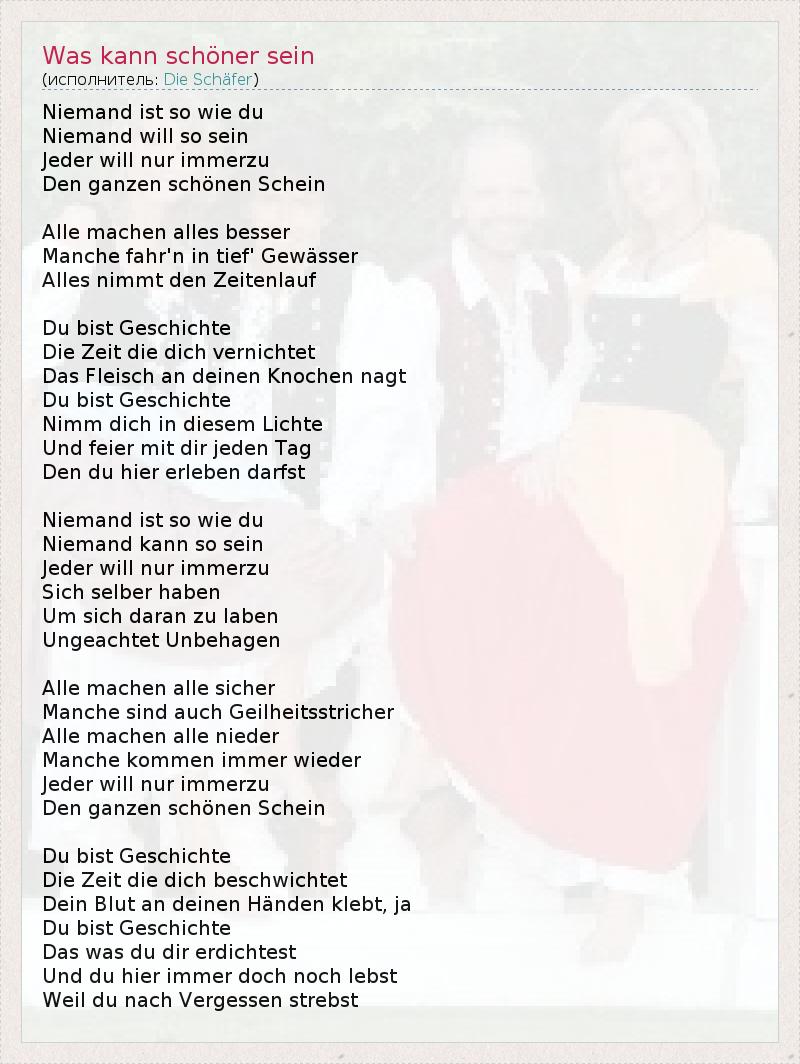 А как ты думаешь, о чем песня "Was kann schöner sein" ?