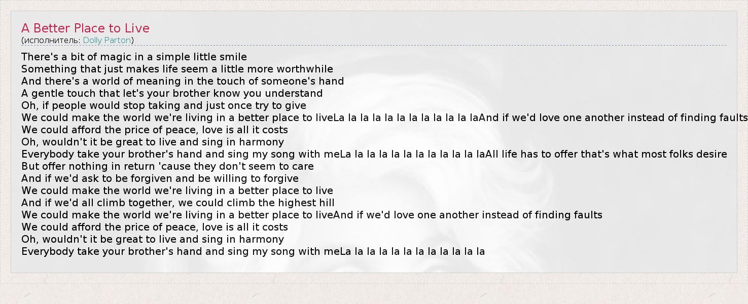А как ты думаешь, о чем песня "A Better Place to Live" ?