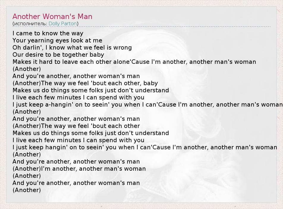 А как ты думаешь, о чем песня "Another Woman's Man" ?
