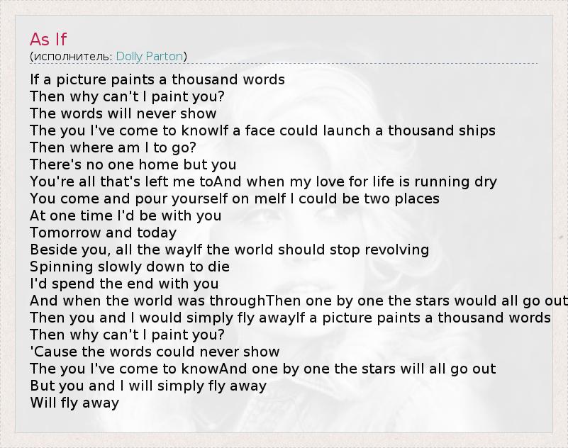 Then you and I would simply fly awayIf a picture paints a thousand words