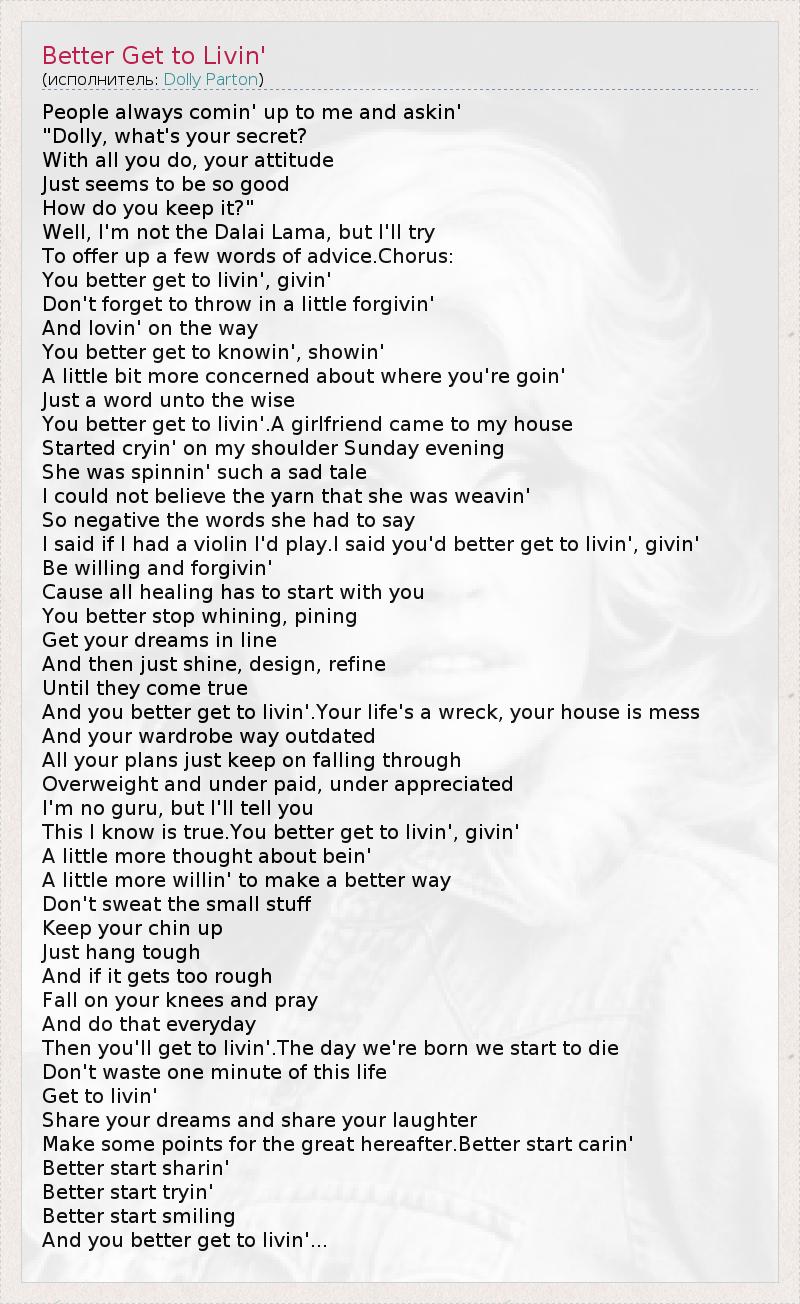 А как ты думаешь, о чем песня "Better Get to Livin'" ?