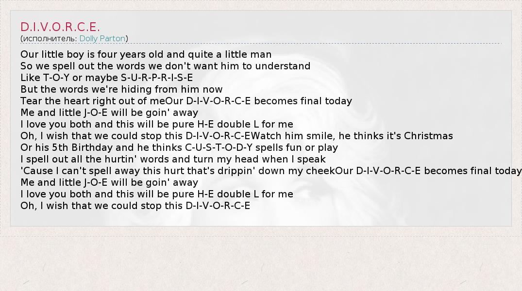 А как ты думаешь, о чем песня "D.I.V.O.R.C.E." ?