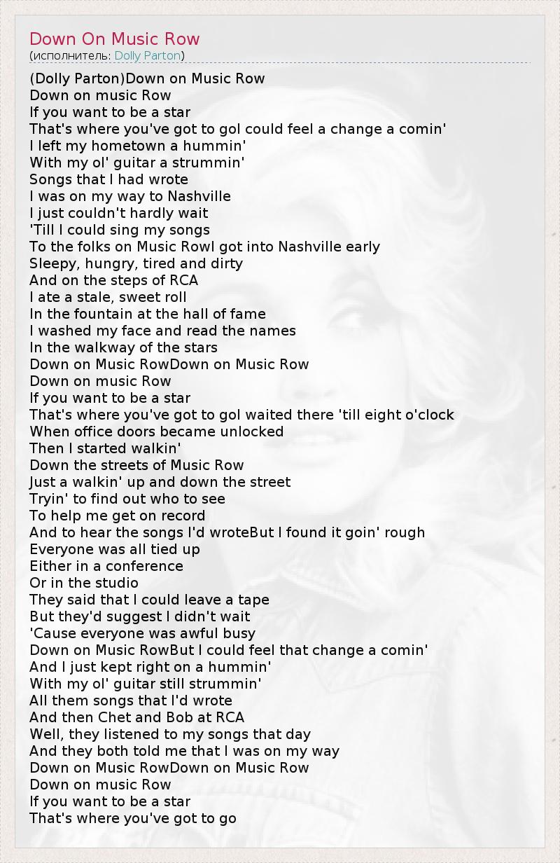 А как ты думаешь, о чем песня "Down On Music Row" ?