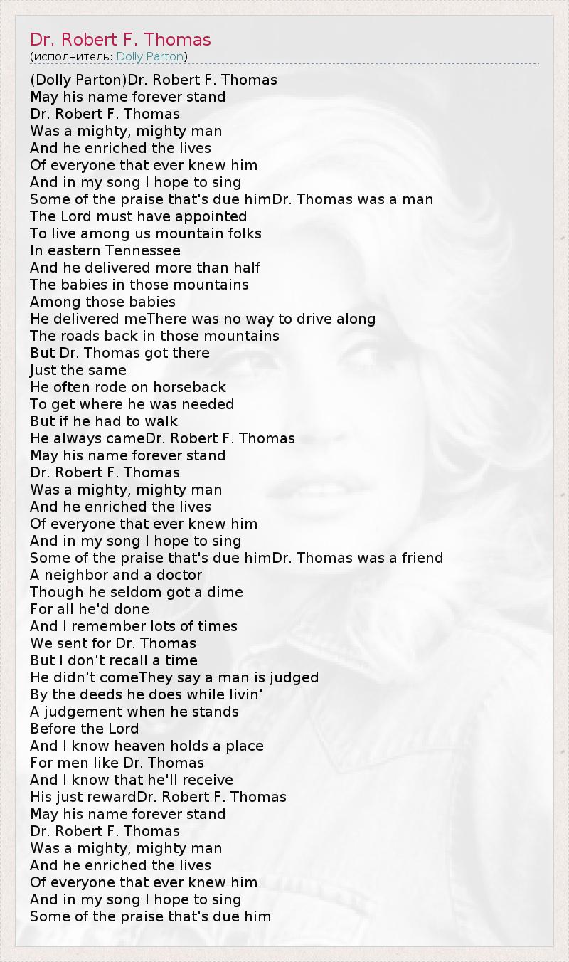 А как ты думаешь, о чем песня "Dr. Robert F. Thomas" ?
