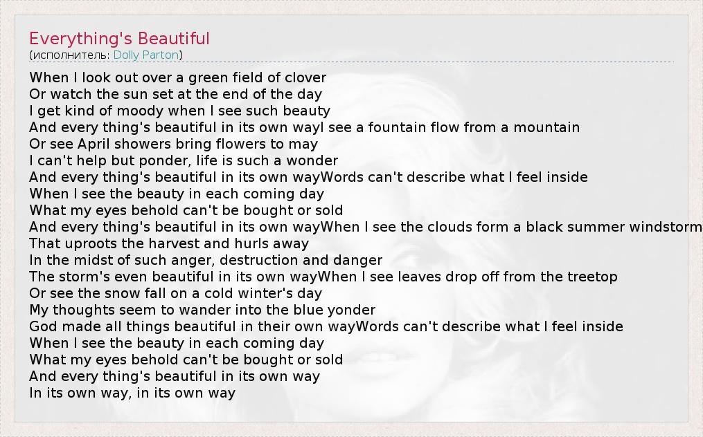 А как ты думаешь, о чем песня "Everything's Beautiful" ?