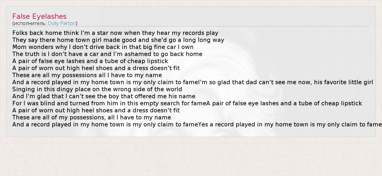 А как ты думаешь, о чем песня "False Eyelashes" ?
