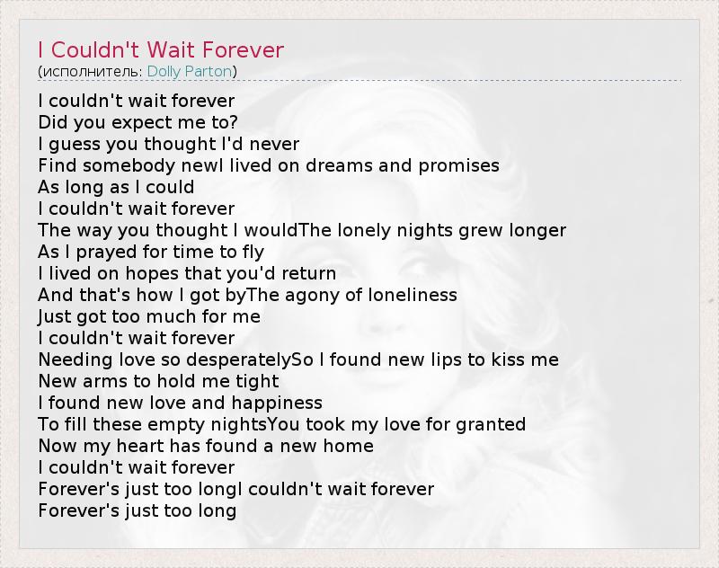 Forever's just too longI couldn't wait forever