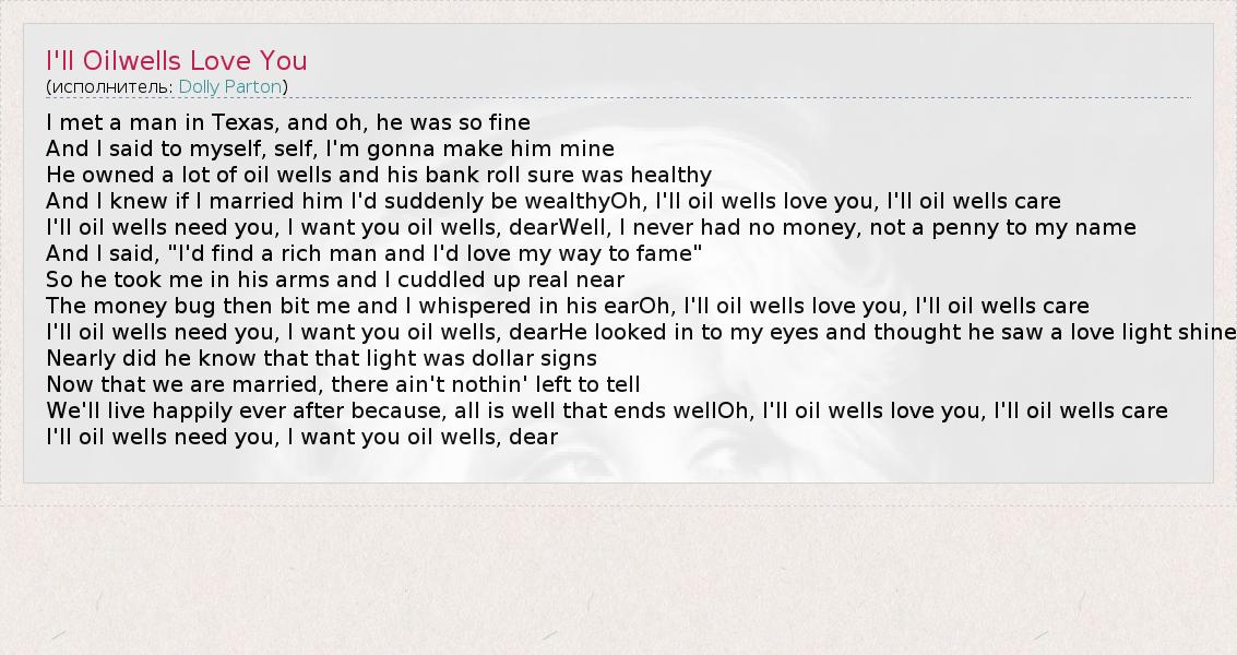 А как ты думаешь, о чем песня "I'll Oilwells Love You" ?