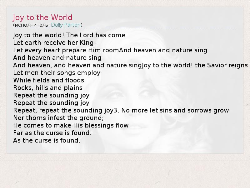 А как ты думаешь, о чем песня "Joy to the World" ?