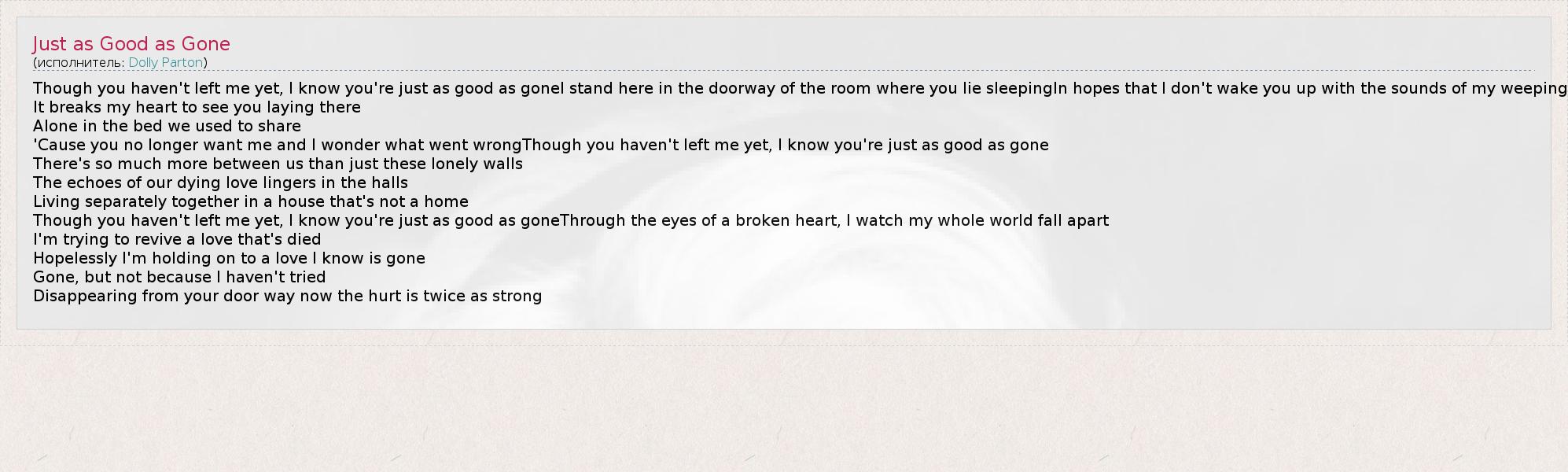 А как ты думаешь, о чем песня "Just as Good as Gone" ?