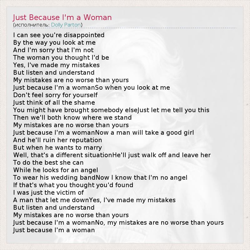 А как ты думаешь, о чем песня "Just Because I'm a Woman" ?