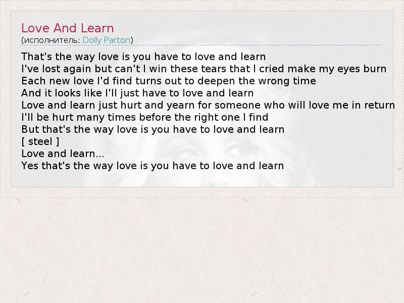 А как ты думаешь, о чем песня "Love And Learn" ?