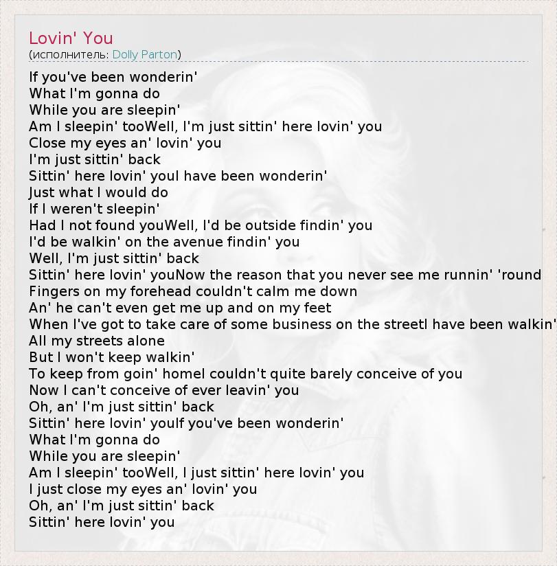 Am I sleepin' tooWell, I just sittin' here lovin' you