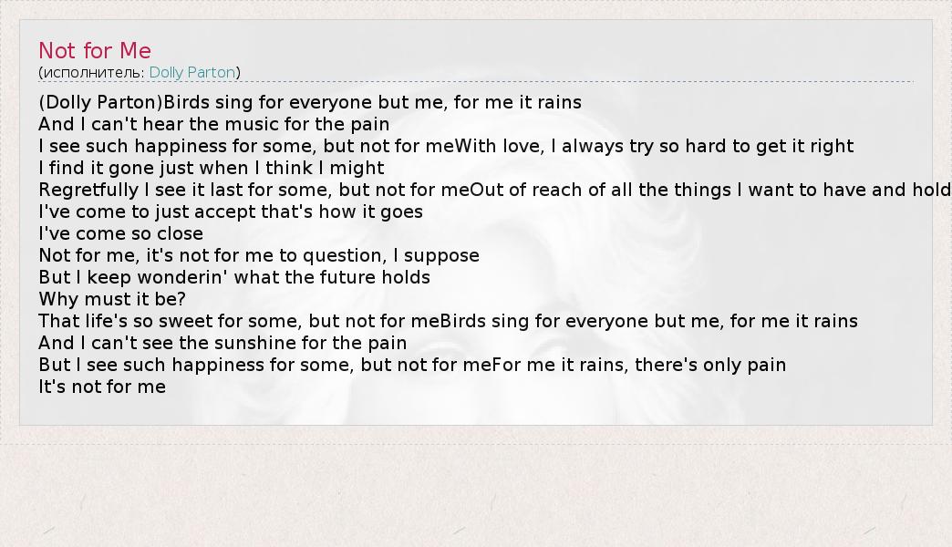 (Dolly Parton)Birds sing for everyone but me, for me it rains