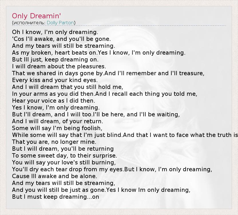 А как ты думаешь, о чем песня "Only Dreamin'" ?