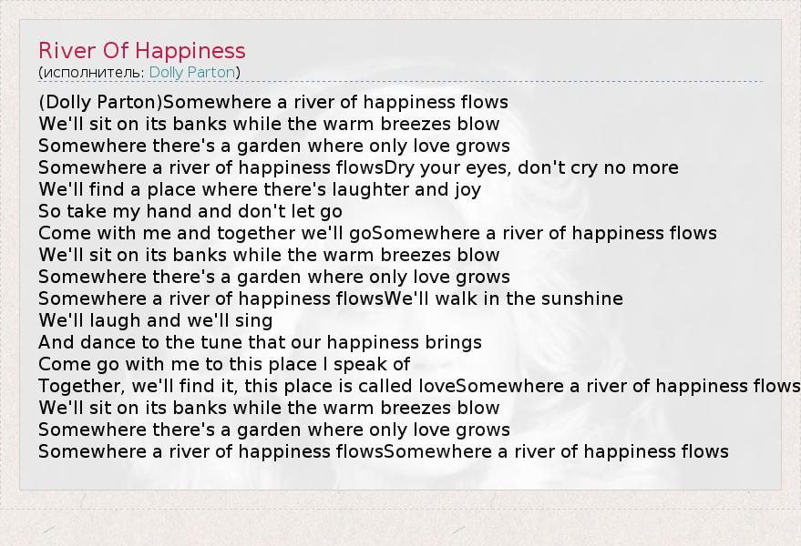 А как ты думаешь, о чем песня "River Of Happiness" ?
