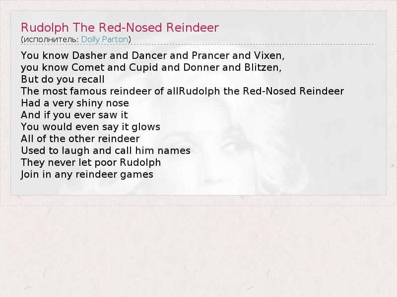 А как ты думаешь, о чем песня "Rudolph The Red-Nosed Reindeer" ?
