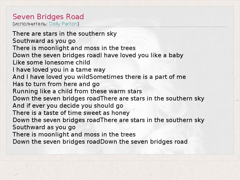 А как ты думаешь, о чем песня "Seven Bridges Road" ?