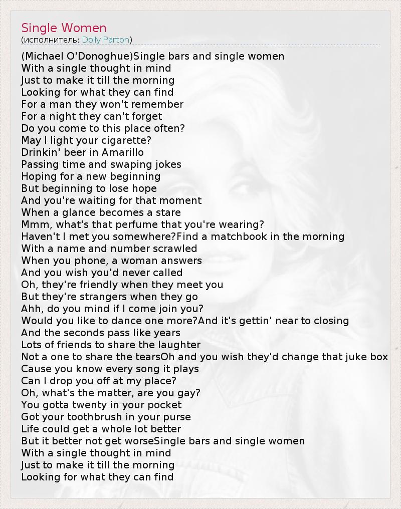 А как ты думаешь, о чем песня "Single Women" ?