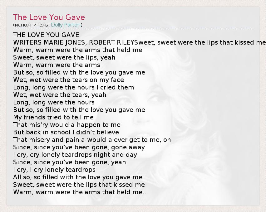 А как ты думаешь, о чем песня "The Love You Gave" ?