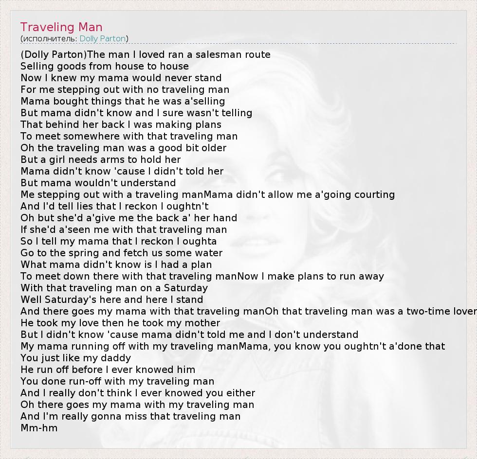 А как ты думаешь, о чем песня "Traveling Man" ?