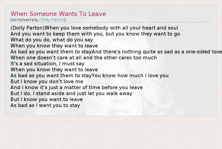 ГлавнаяИсполнителиDolly PartonWhen Someone Wants To Leave