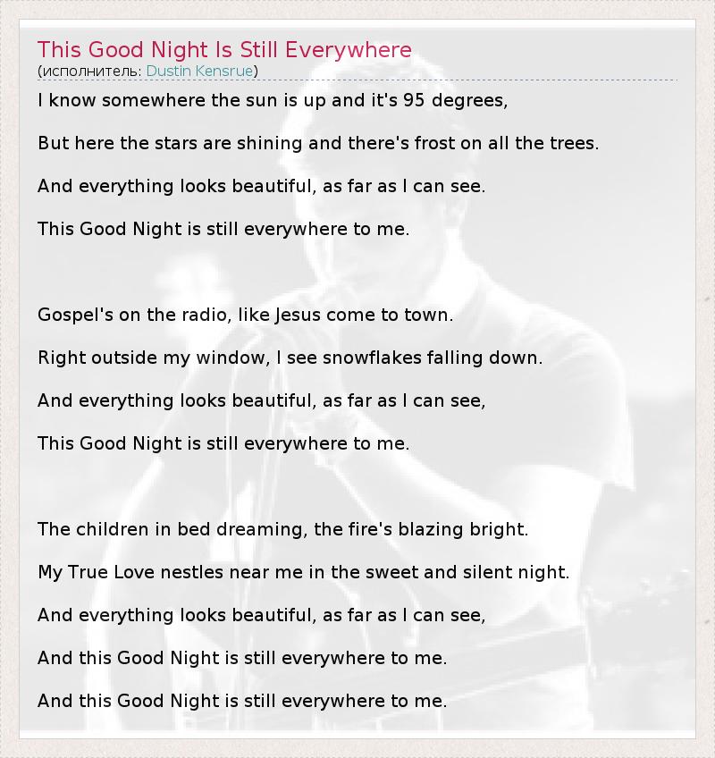 А как ты думаешь, о чем песня "This Good Night Is Still Everywhere" ?