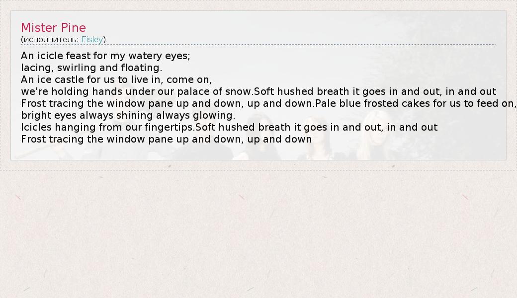 А как ты думаешь, о чем песня "Mister Pine" ?