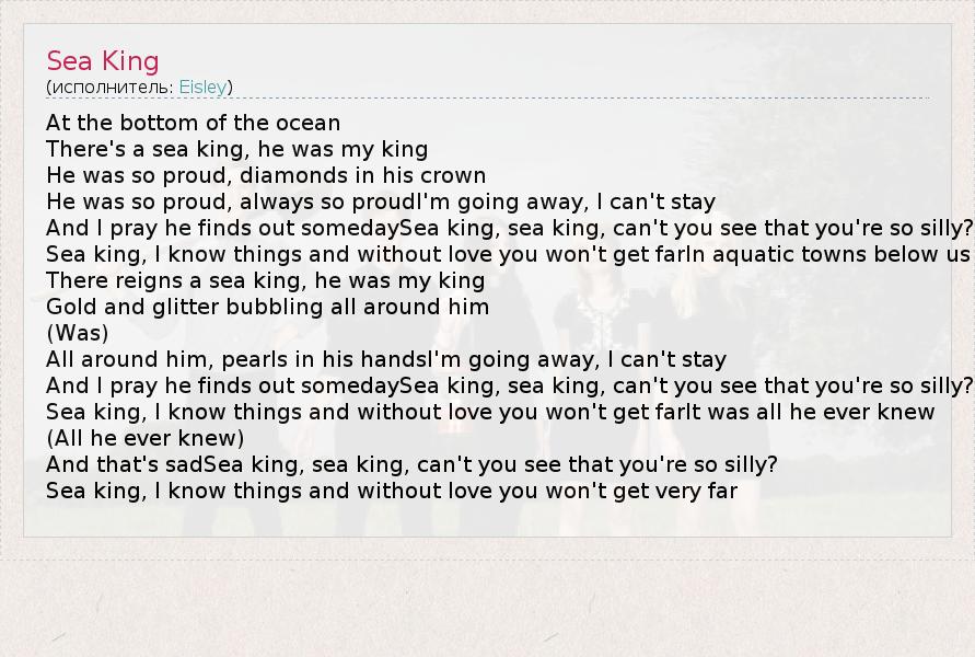 А как ты думаешь, о чем песня "Sea King" ?