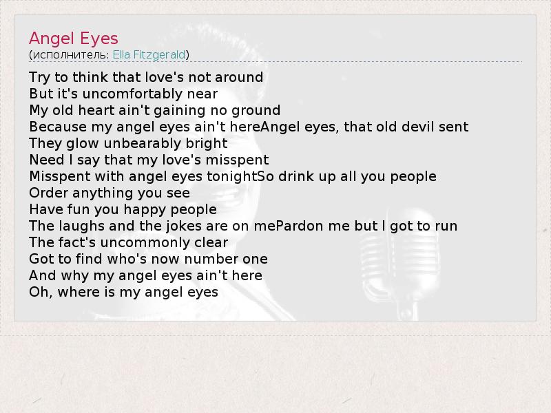 А как ты думаешь, о чем песня "Angel Eyes" ?