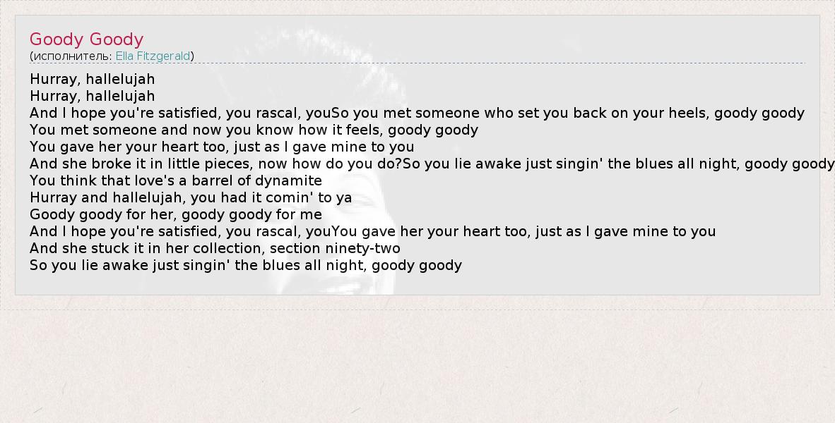 А как ты думаешь, о чем песня "Goody Goody" ?