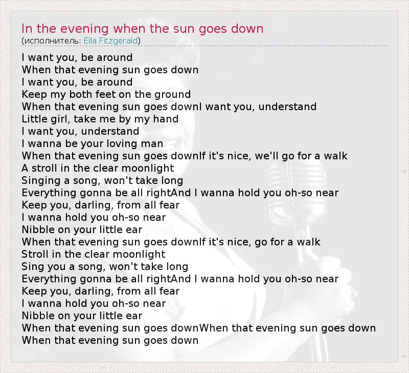 When that evening sun goes downI want you, understand