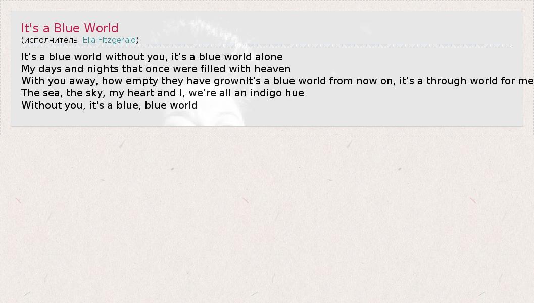 А как ты думаешь, о чем песня "It's a Blue World" ?