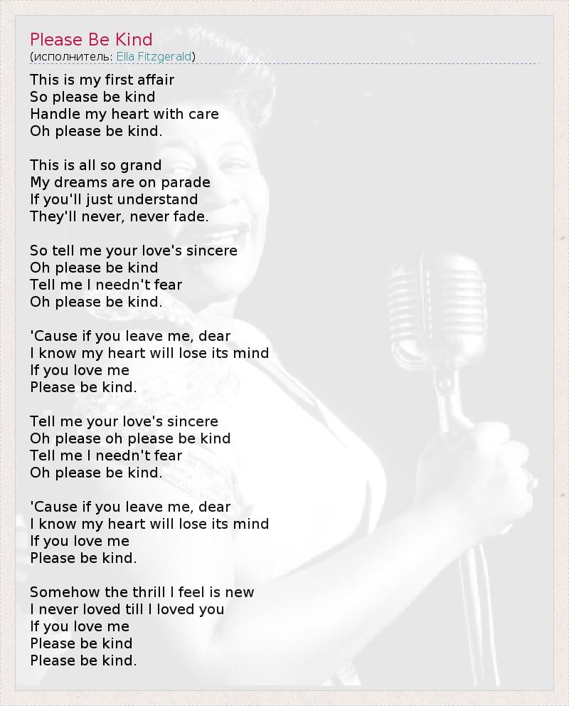 А как ты думаешь, о чем песня "Please Be Kind" ?