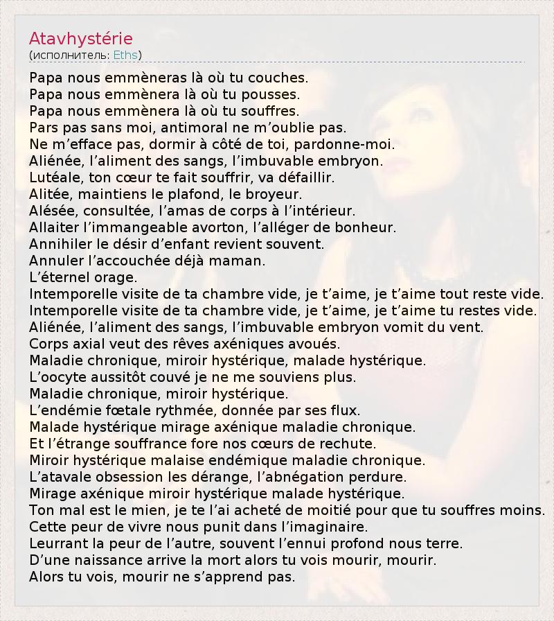 А как ты думаешь, о чем песня "Atavhystérie" ?