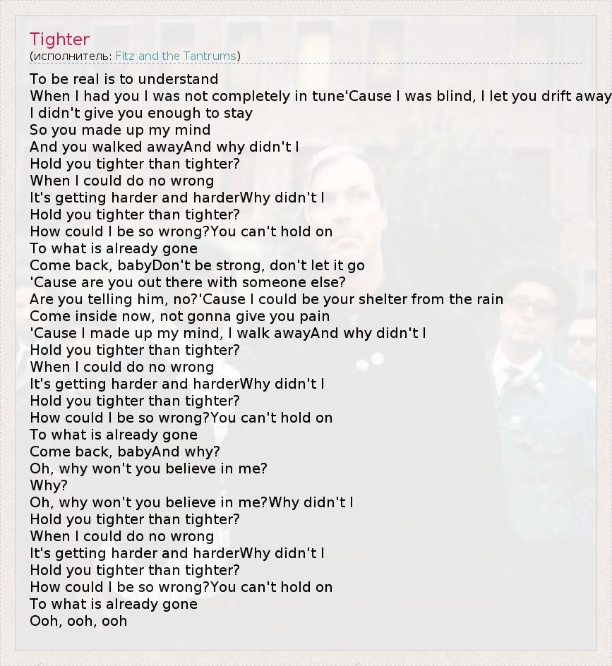 А как ты думаешь, о чем песня "Tighter" ?